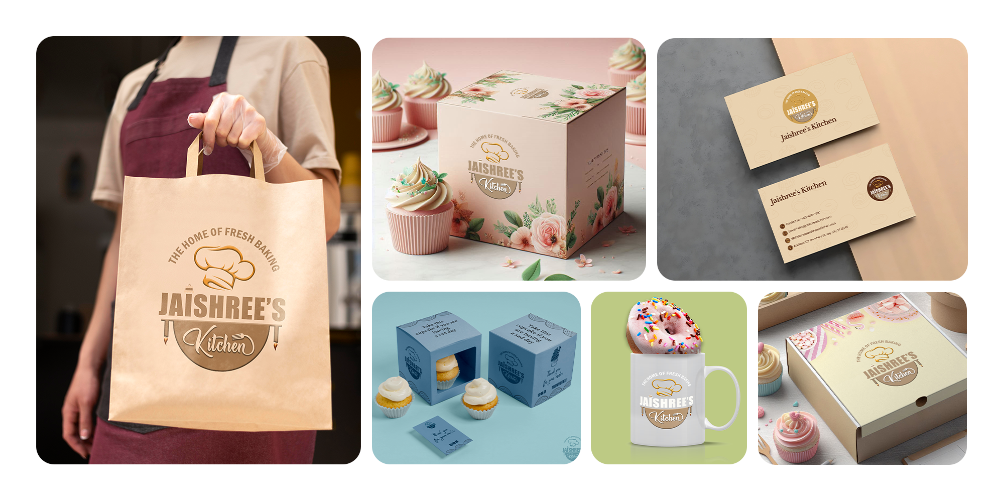 The branding for Jaishree's Kitchen helped transform a small home bakery into a recognizable local favorite. The logo’s warm, handcrafted feel boosted customer trust and made the business stand out across packaging and social media.